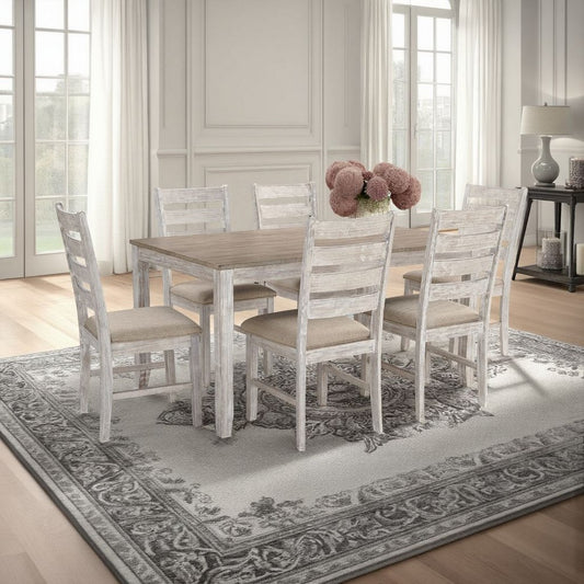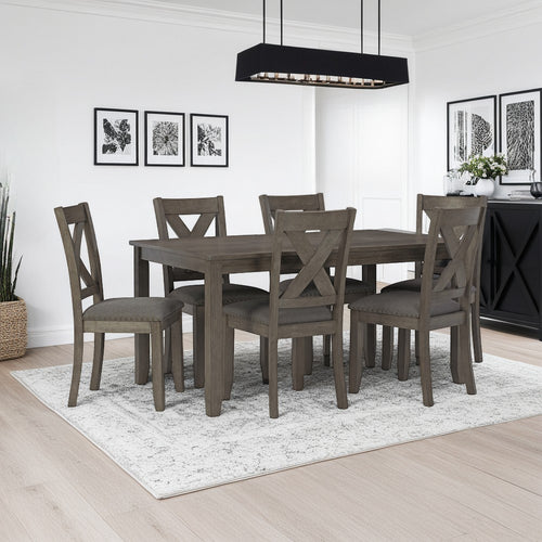 Ashley Dining Set, 7 Piece, Lattice Back Chairs, Gray Wood, Polyester