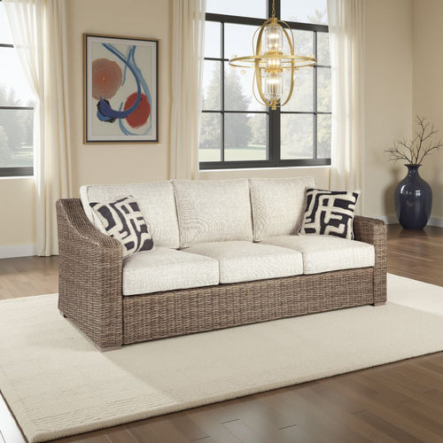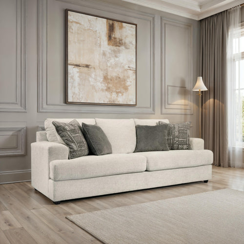 Ashley Soletran Sofa 96", Stone Finish , 4 Jacquard Pillows,  Chenille