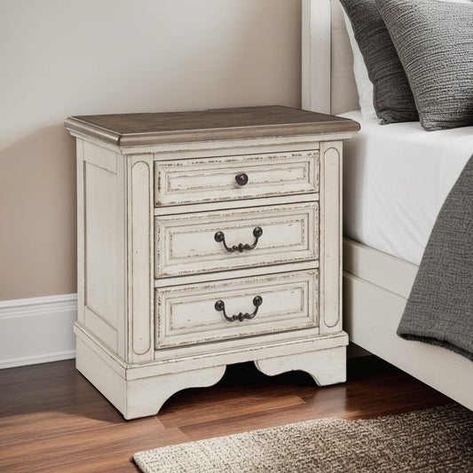 Ashley Nightstand, 3 Drawer, Open Platform Top, Transitional | White