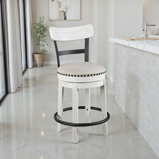 Ashley Zane Counter Stool, 25" Swivel Round Seat, White Wood Frame