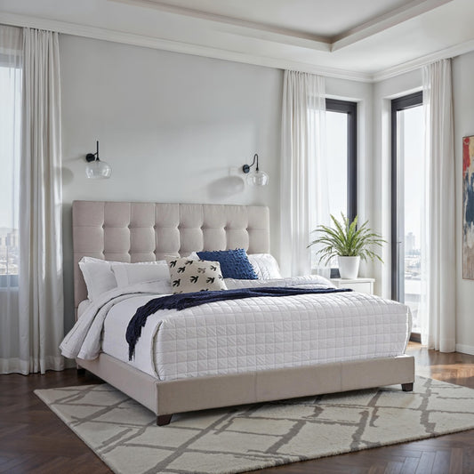 Ashley Dolante King Bed, Button Tufted Beige, Polyester Headboard