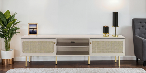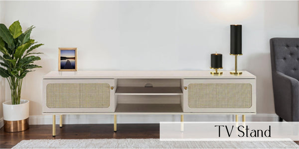 Two Drawers Wooden Desk with Tubular Metal Base, White and Gold
