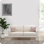 Gala Sofa | Beige Linen | 2 Pillows | Brown Wood Frame