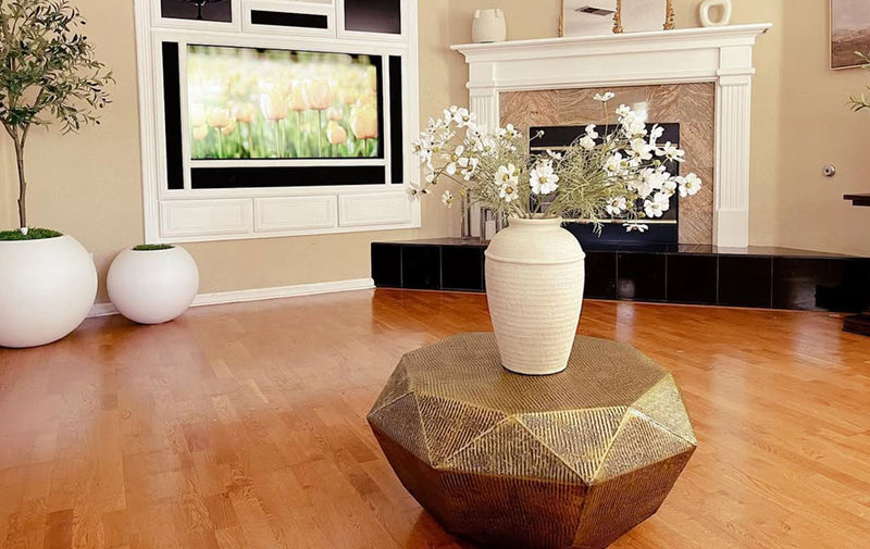 Bon 22 Inch Artisanal End Side Table, Multifaceted Solid Acacia Wood, Octagon Top, Natural Brown By The Urban Port