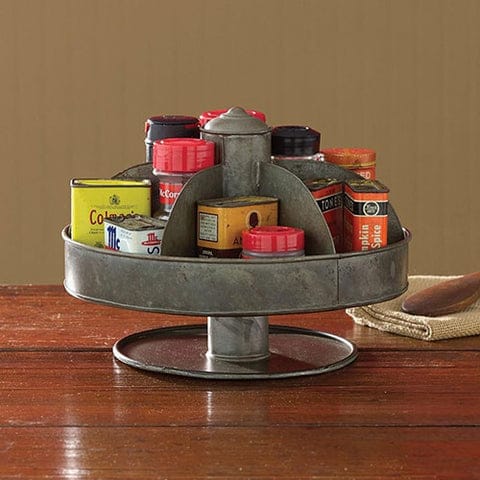 A versatile lazy Susan organizer makes a great space for putting your stuff as well as the kitchen appliances with six pocket compartments. It is movable from top and corrosion free, so it can be used in outdoors as well. Ideal for using in kitchen spaces for spice boxes and ingredient packs. This galvanized metal organizer will be useful for resting your jewelry items and planting accessories. Its distressed finish makes it different from others and highlights in other objects nearby.