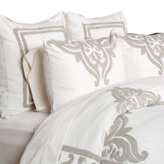 Lenz King Duvet Cover | Cotton | Hand Stitched Damask | Ivory