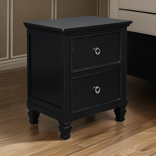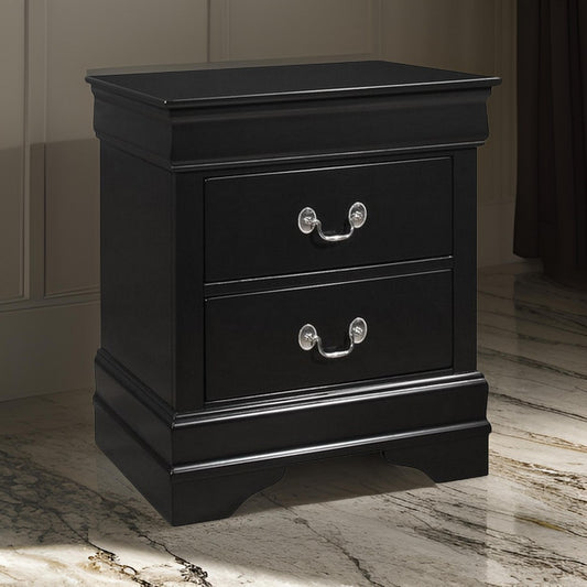 Nightstand | 2 Drawer | Antique Pull Handles | Wood Frame | Black
