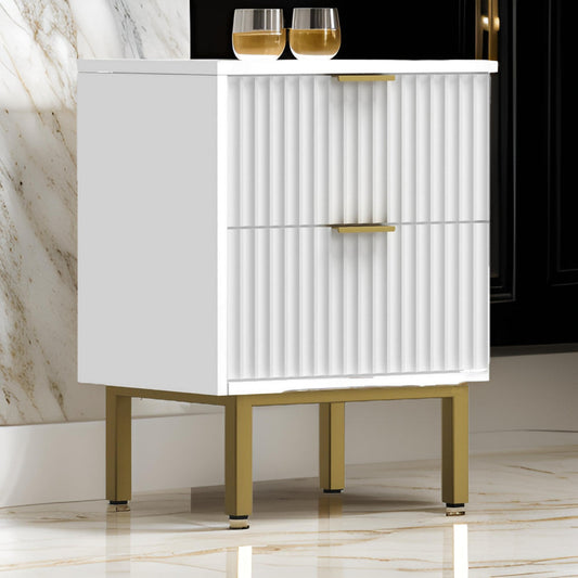 • Lif Nightstand | 25" | 2 Drawers | Gold Accents | Pure White