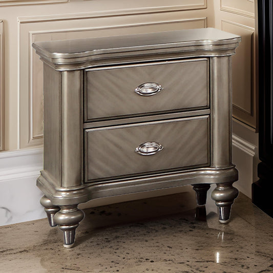• Haya 24 Inch 2 Drawer Nightstand, Embossed Smooth Gray Wood, Silver Trim By Casagear Home