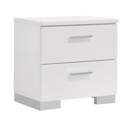 Nightstand | 2 Drawer | Metal Pull Handles | Glossy White