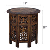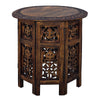 Reminiscent of a traditional style craftsmanship, this accent table makes an elegant fit for your interior decor. Artisanally crafted, this table depicts a round silhouette with an octagonal base. With hinges to facilitate easy folding mechanism, it showcases floral design on the edges of the tabletop and meticulous cut out design making it a center of attracting. Handcrafted from a water resistant mango wood frame in dark walnut brown finish, this table harmonizes with a wide variety of decor styles.