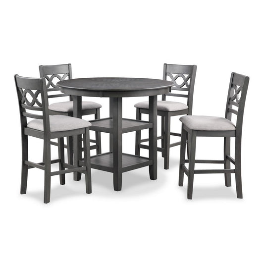 SaleCeri 5pc Round Counter Dining Table and Chair Set, Gray Wood, White Fabric By Casagear Home