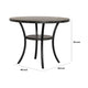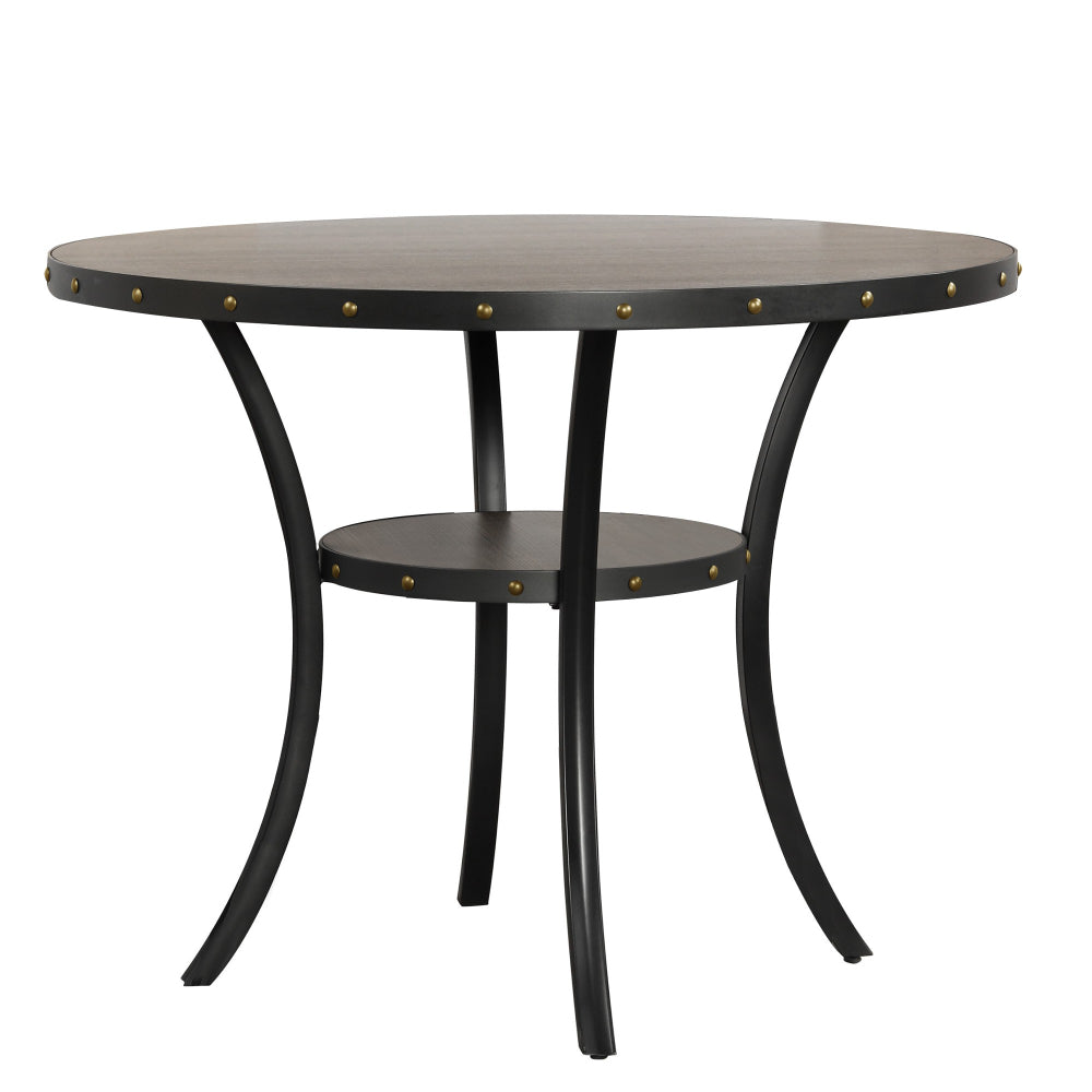 A bold statement for class and comfort, this 48 inch counter height table features a smooth, gray, rounded wood top and an open bottom shelf for simple and classically integrated storage. Rivets accent the glossy, smooth interior and flared legs with a strong, industrial accent. Chairs sold separately.