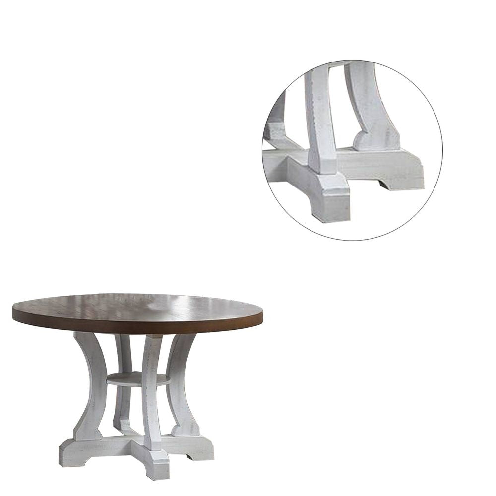 Neci Round Dining Table | 54" | White Pedestal | Distressed Brown