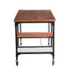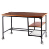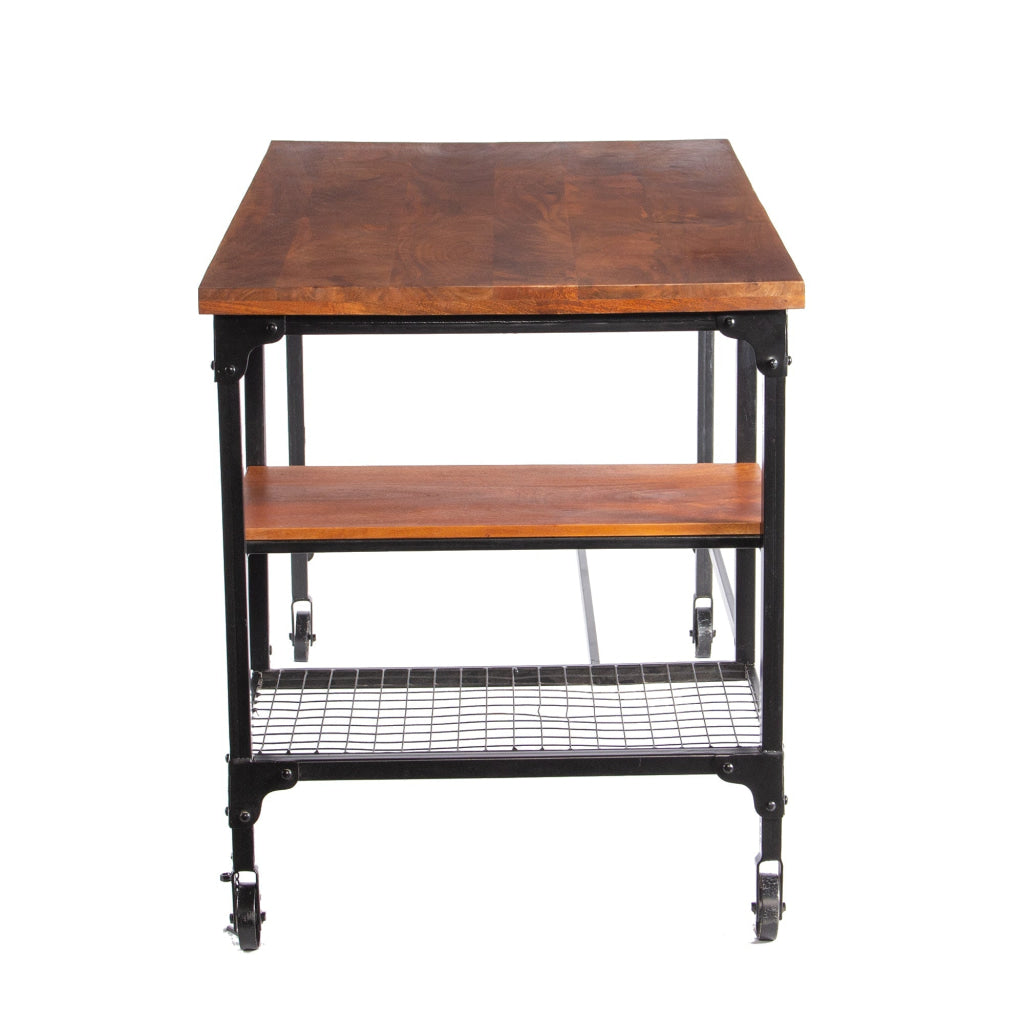 Accentuate your home office space with the inclusion of this spacious desk, exhibiting industrial design. The rectangular top and one side shelf of this table is constructed using Mango wood and supported by tubular metal base, accented in powder coated black finish that provides a perfect contrast with the brown finish. It comes with two side side shelves which includes one a mesh design bottom shelf and one wooden shelf which provides a great space to store your files, books, and other related items. The open space on the other side offers a free leg area while the stretcher bolsters the base and doubles as a footrest. The four caster wheels makes it easy to relocate and comes with a lock function.