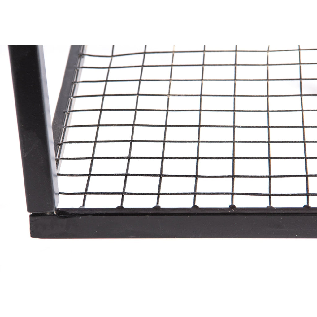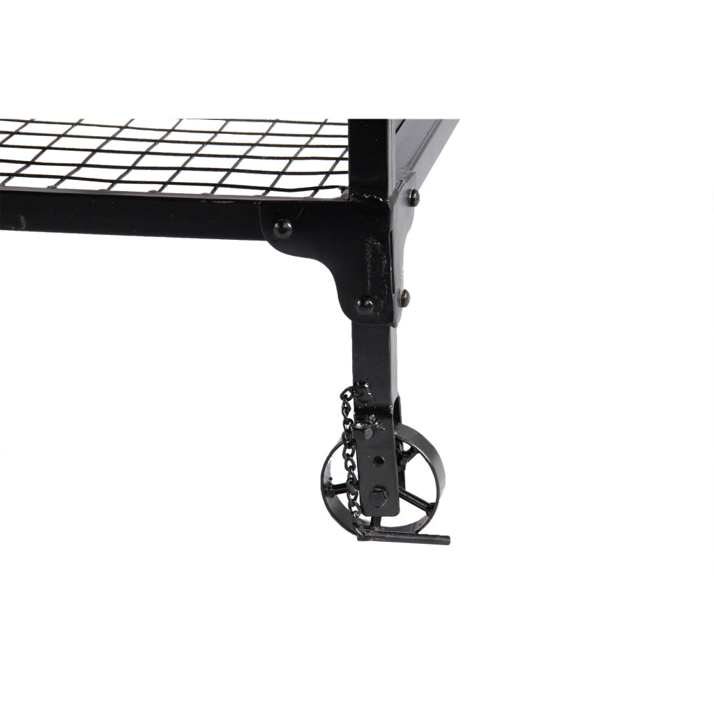 - Features two side shelves which includes one wooden shelf and one mesh design metal shelf.