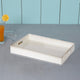 Simple and elegant tray with cutout handles, eliminating all unwanted and unnecessary features and designs, this tray with its very simple and minimal artifacts is awesomely beautiful!! Crafted in a rectangle shape the white color is very soothing. Its immaculate finish is praiseworthy. The dimensions measure 19x14", from the Mimosa Decor.