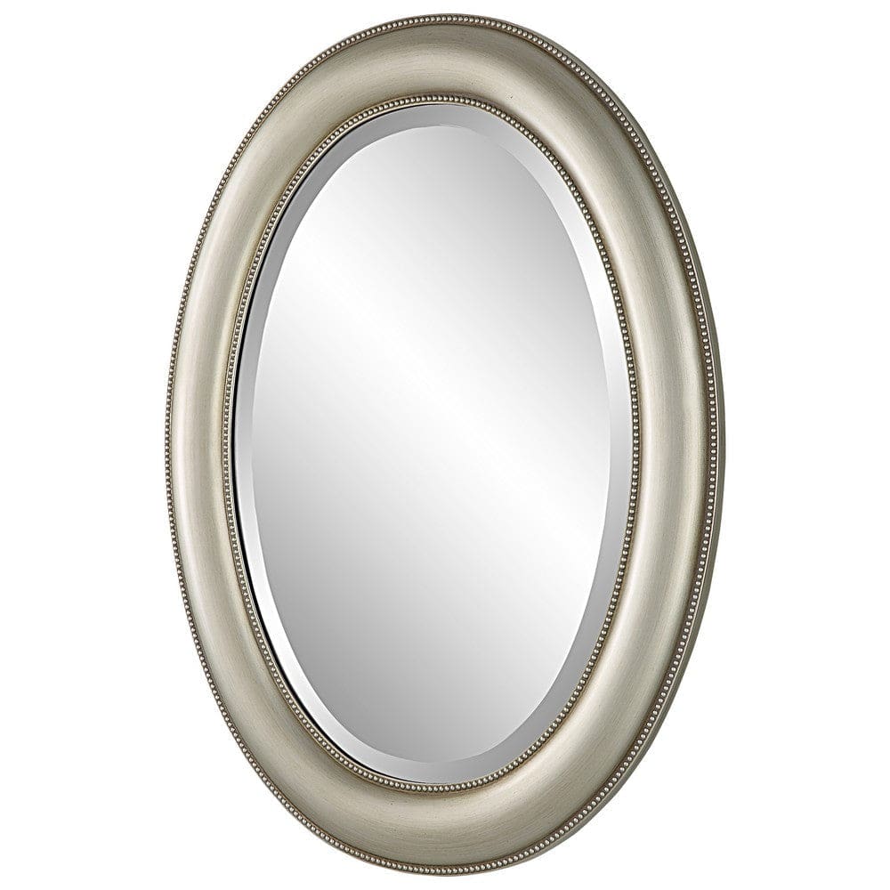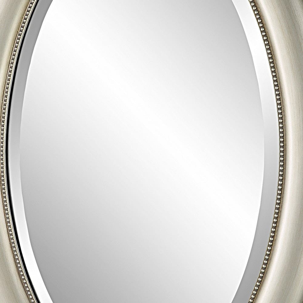 Wall Mirror | 29" | Beaded Oval Frame | Metallic Silver