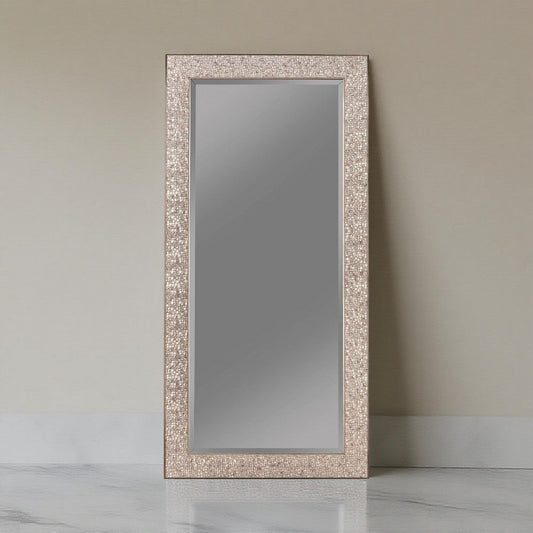 Floor Mirror | Rectangular Beveled Accent | Glitter Mosaic Pattern | Gray