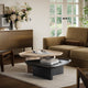 With a classic, timeless design and a contemporary modern influence, this handcrafted dual tray top wooden coffee table is made to be a fantastic fit for any lounge, den, or living room decor. Its black and washed white finished surfaces with rounded corners accentuate the richness of its wood grain details, making this the perfect piece for serving to friends, family, and guests or simply to serve as a daily lounging necessity. The sturdy wide panel legs are well balanced and smoothly finished for a calming modern Scandinavian home aesthetic. This piece transforms any decorative setting into an artful, casual hang out space for ages to come.