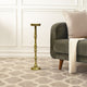 Brita 12 Inch Cocktail Accent Table, Round Wood Top, Triangular Gold Base, Brown, Brass By The Urban Port