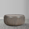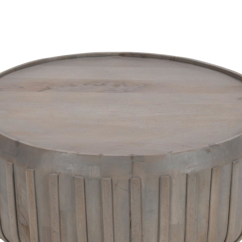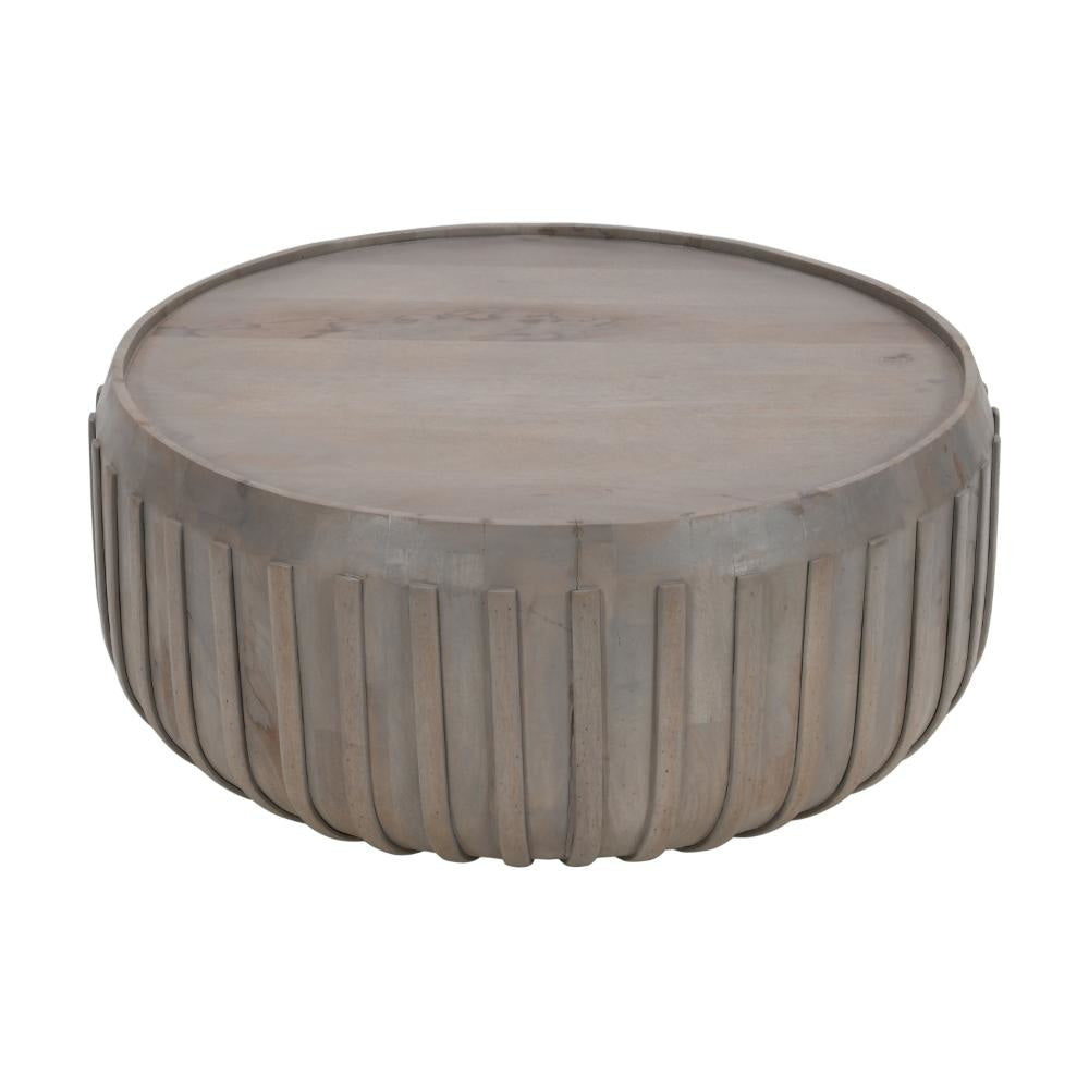 Alisha 36 Inch Coffee Table, Handcrafted Drum Shape with Ribbed Edges, Gray Mango Wood The Urban Port