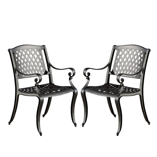 Cay Outdoor Dining Chair Set of 2, Mesh Style Back, Black Cast Aluminium By Casagear Home