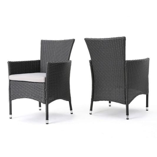 Gil Outdoor Dining Chair Set of 2, Gray Cushions and Poly Rattan
