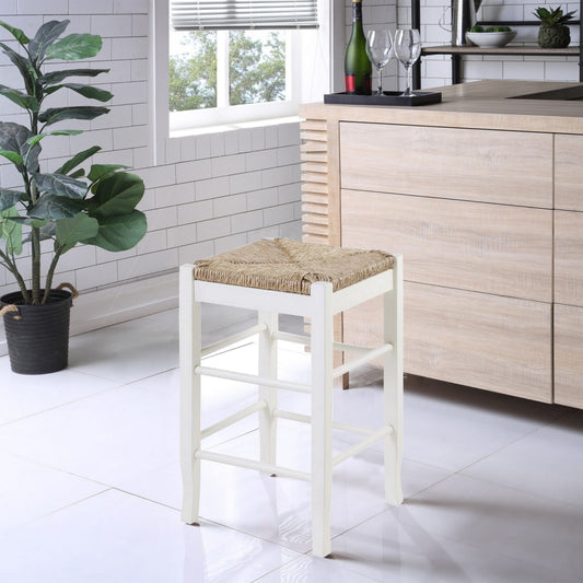 SaleCounter Stool | Square Wood Frame | Ivory Brown Rush Woven Seat