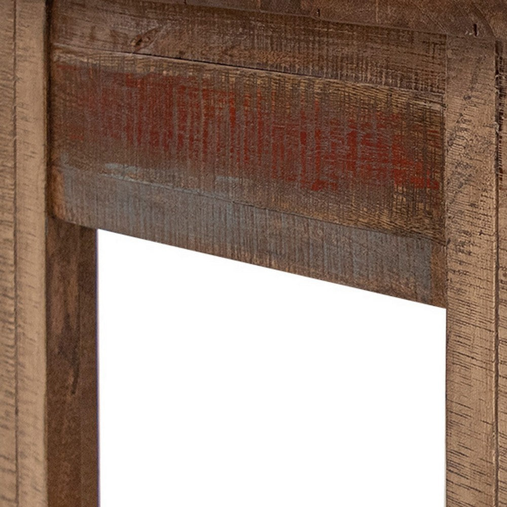 • Multicolor distressed finish on hand brushed solid wood frame