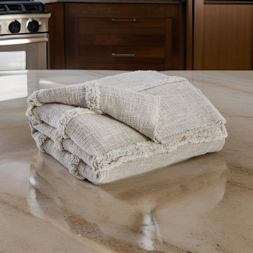 60 x 50 Throw Blanket, Cotton Tufted Chenille, Fringe Tassels, Ivory