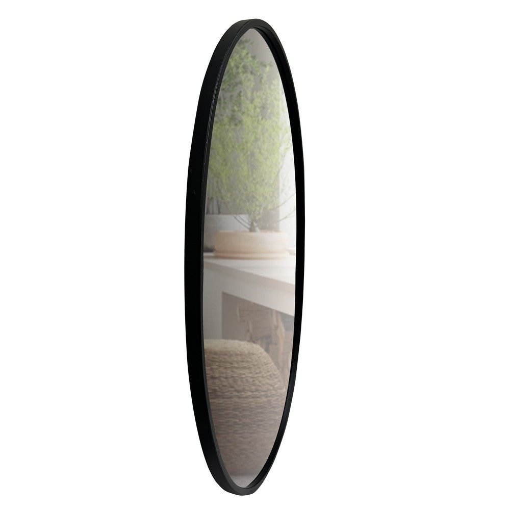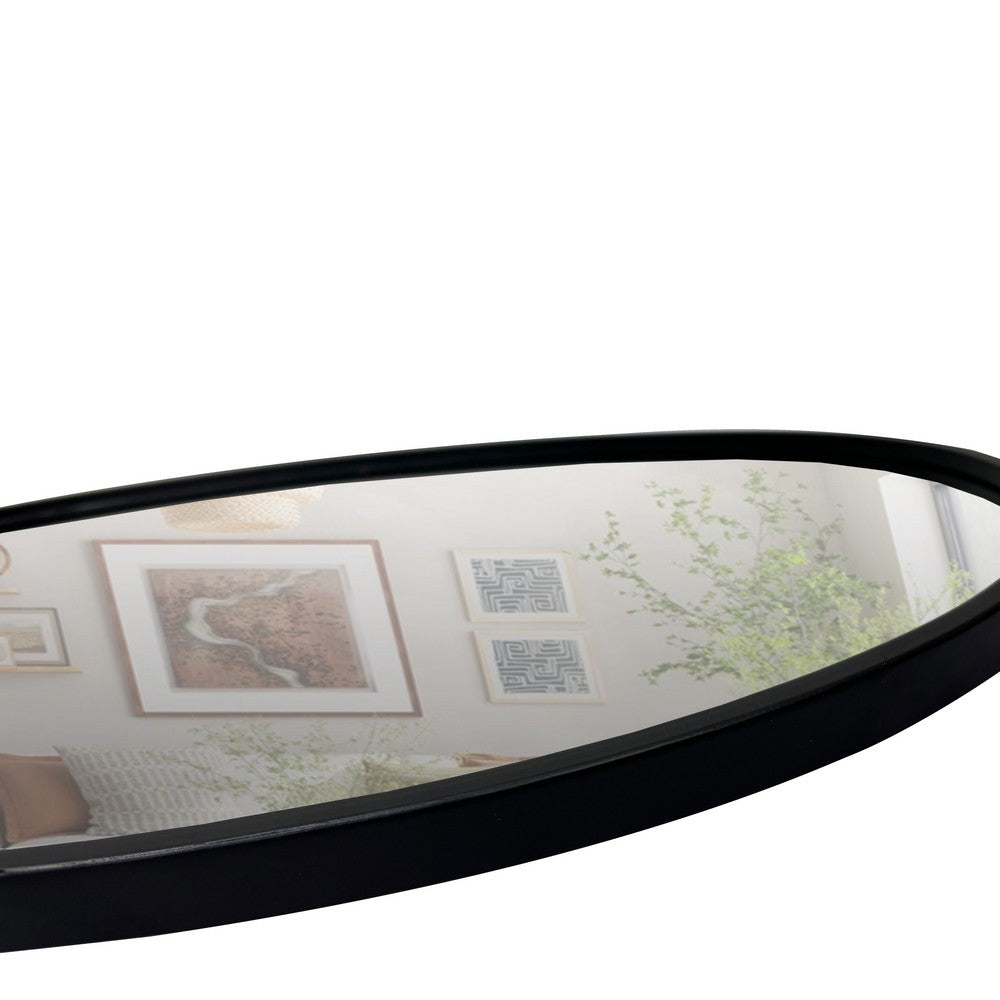 Oval Metal Wall Mirror with Framed Edges and Wooden Backing, Black By The Urban Port