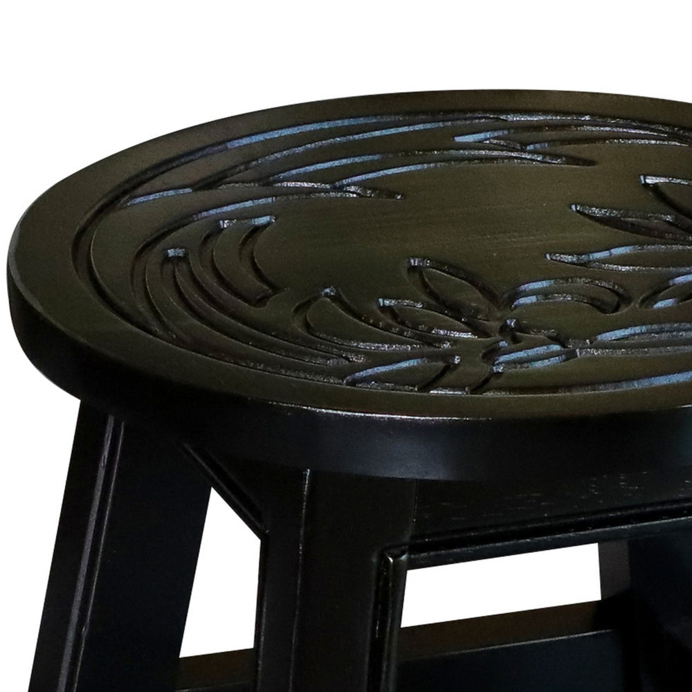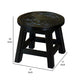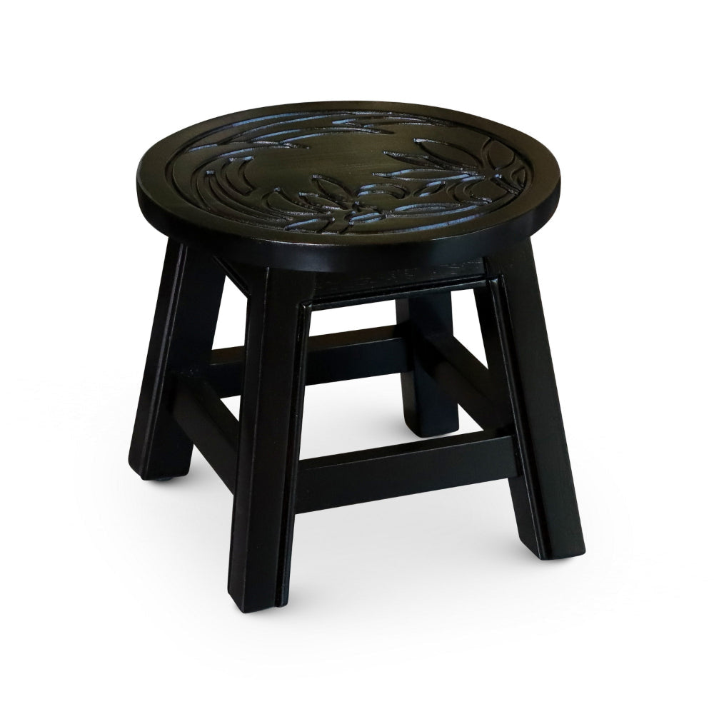 11 Inch Step Stool Footrest, Round Wood Carved Floral Print, Espresso Brown By Casagear Home