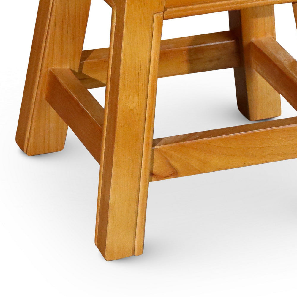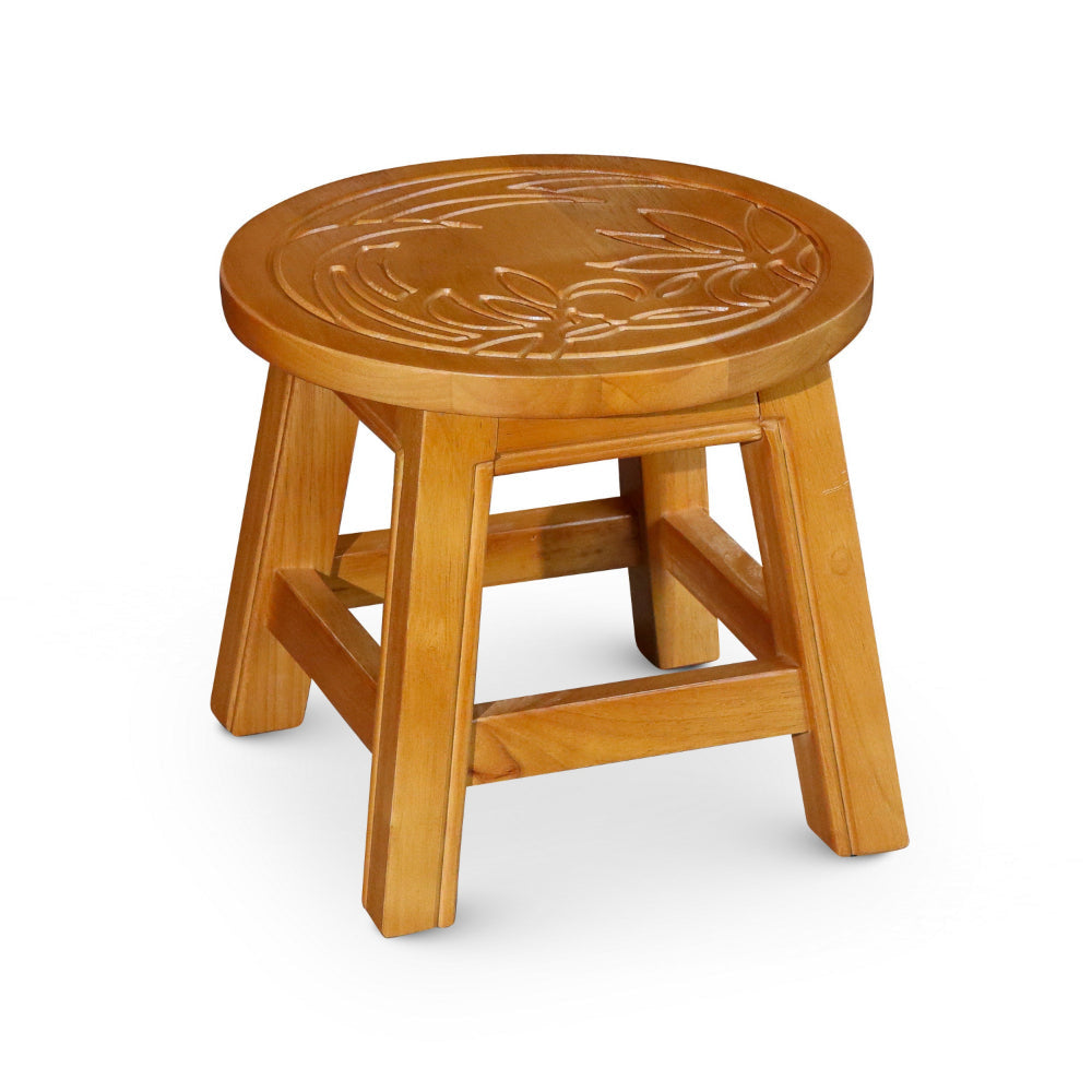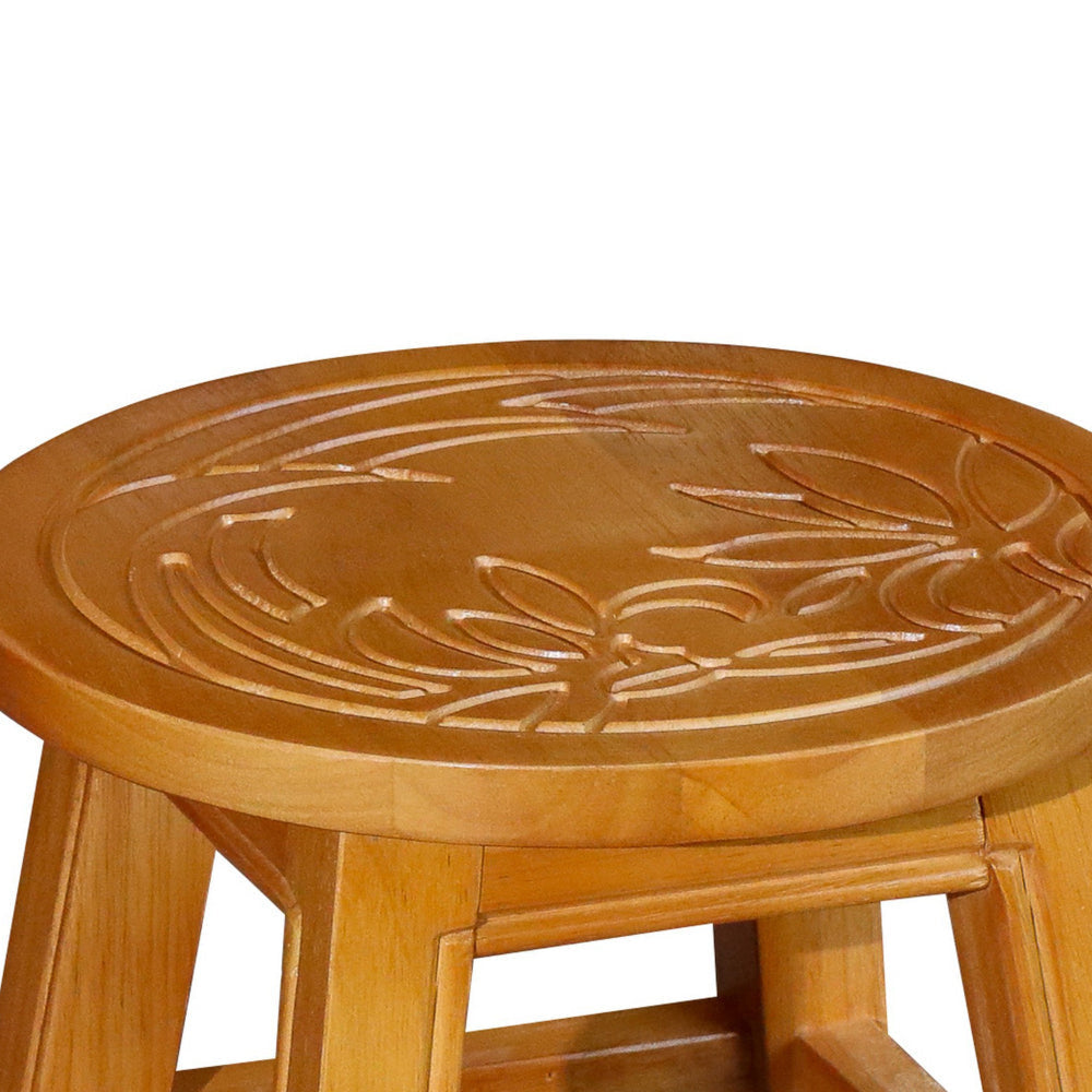 This step stool footrest exhibits both charm and utility with a thoughtful design and a natural brown wood finish. The queen bee carved details on its round top add a touch of intricate elegance, transforming a simple, functional piece into a decorative accent. The interconnected legs ensure stability, making it a reliable choice for reaching elevated surfaces or taking a short rest as needed.