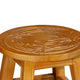 11 Inch Step Stool Footrest, Round Wood Carved Floral Print, Natural Brown By Casagear Home
