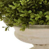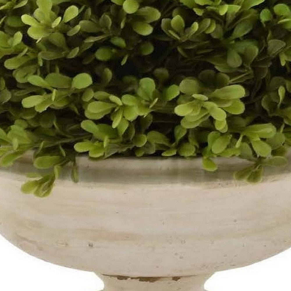 15 Inch Faux Boxwood Topiary Plant in Urn Pedestal Pot, Off White Planter By Casagear Home