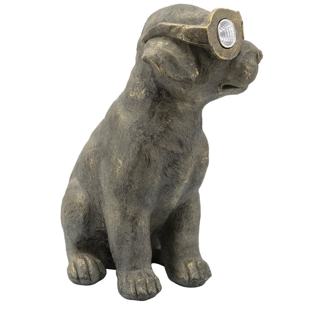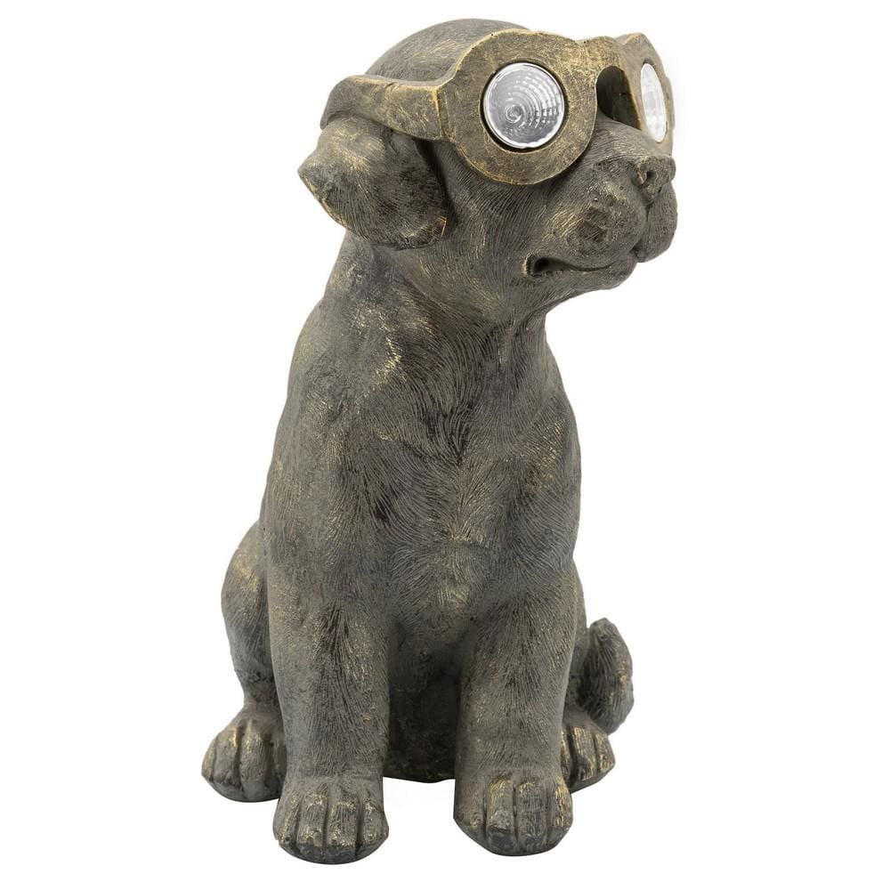 Description:Striking and remarkable, this accent decor will enhance any space and add a subtle touch of grace. This sitting dog statue is crafted from resin in an antique gold finish that is both classic and elegant. The solar glasses add to the technical look to it and justifies it very well, keep it in your home or garden that everyone will feel like petting it.
