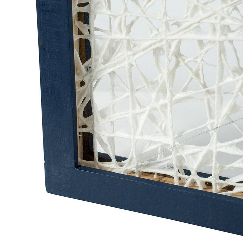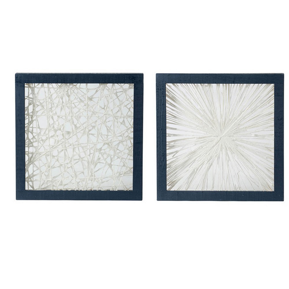 Description:Refurbish your interior with this set of two vivid wall art paintings, bringing a vibrant ambiance and a simplistic charm to the theme of your office, home, or foyer. Painted in a unique abstract starburst pattern on a white background with matte blue frames, this duo can be paired beautifully with other vintage or modern style interior accents easily.