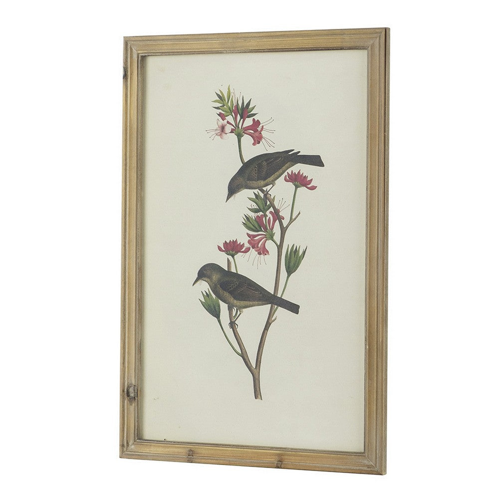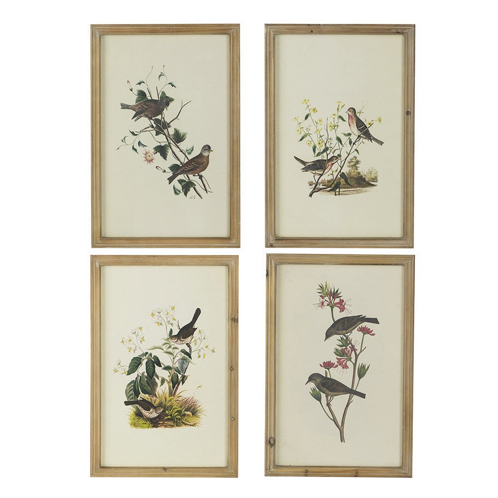 Bring a touch of nature to your wall with this set of four framed wall art prints, faithfully depicting birds in each one. These prints are made from fir wood, MDF, and paper and feature a muted white and grayfinish. The rectangular shape and the unique print of birds with branches create a charming and natural element for your wall, creating a cohesive and gallery style display for your home.