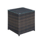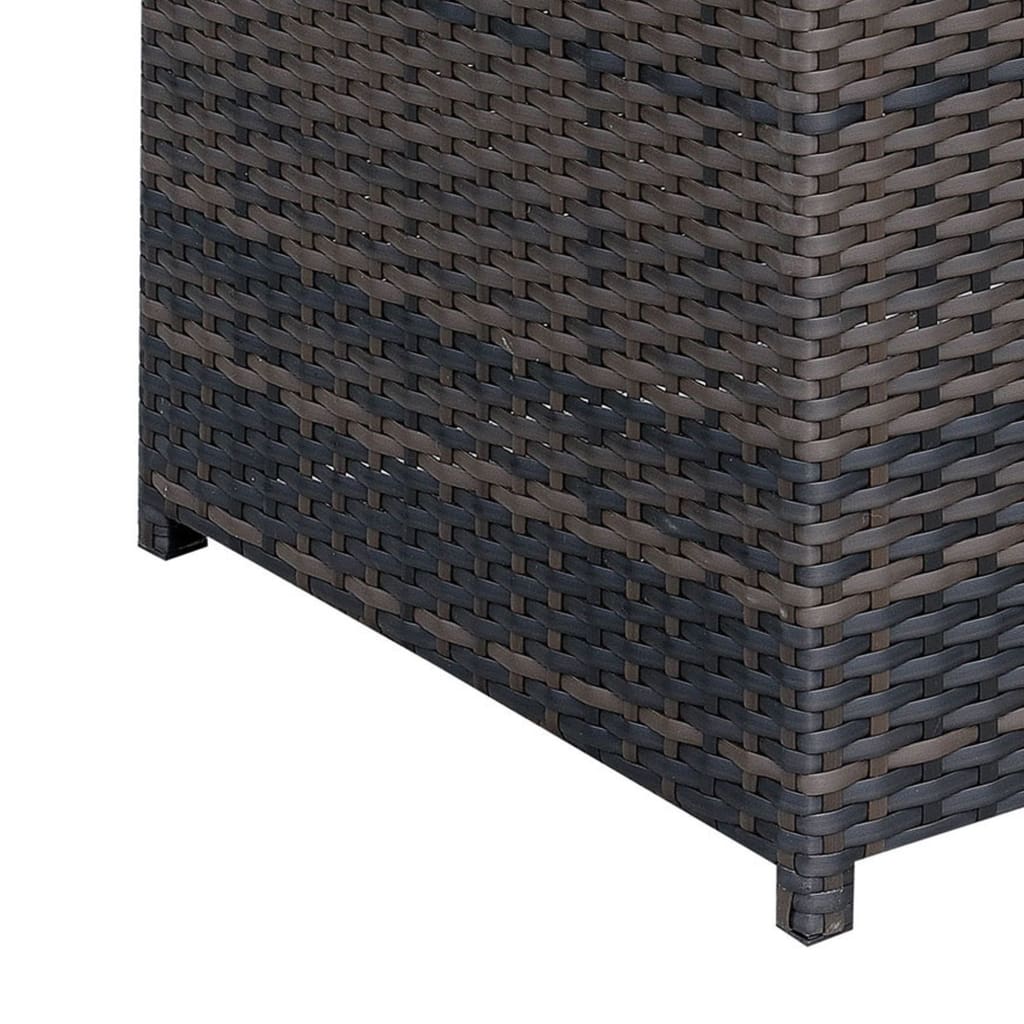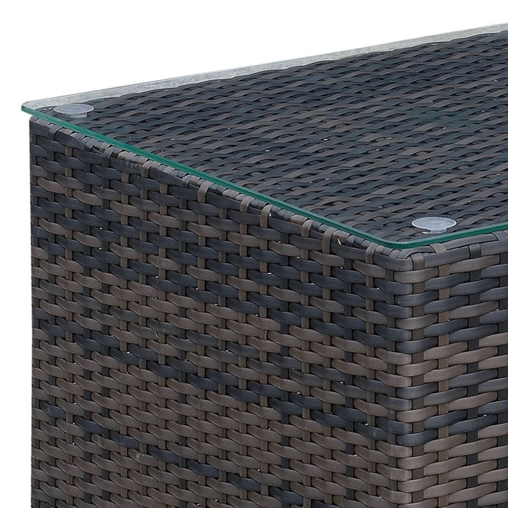 - Constructed from Aluminum, Glass and Faux Rattan in brown color