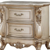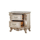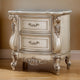 - It comes with 2 spacious drawers with elegantly carved metal pulls.