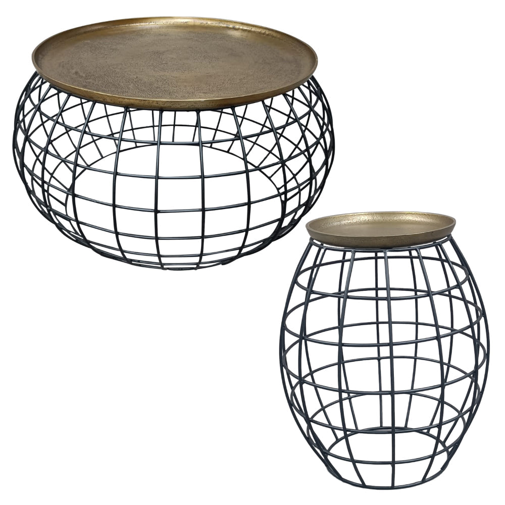 Bring a unique charm to your home decor setup with this set of two tables, both can be used as coffee tables or one coffee and one side end table. This duo features unique and functional accents that will instantly upgrade your space, providing the perfect complement for rustic, modern farmhouse, vintage, or industrial decor. This set is built to last, with durable metal construction that ensures longevity while its high-quality materials improve its strength and stability. The round antique brass finished smooth top is effortless to care for, and its uneven vein pattern makes for a classy, tasteful visual centerpoint. Use this chic table duo to display your favorite living room decor or as a spot to set a snack plate in front of the couch during family time or parties.