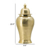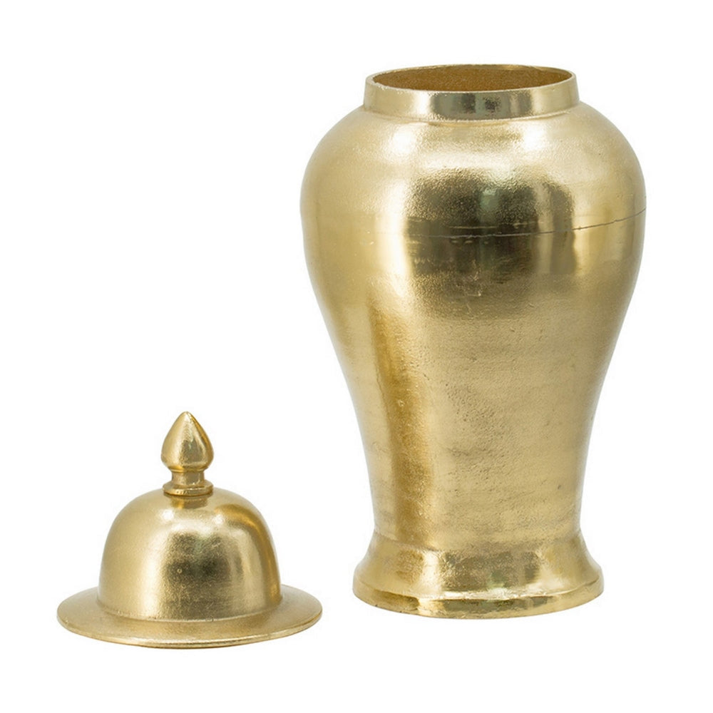 21 Inch Lidded Vase Urn, Finial Accent, Brilliant Gold Aluminum Finish By Casagear Home