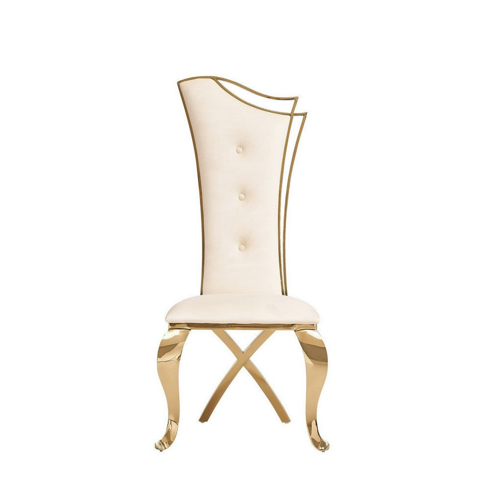 Description:Elevate your dining experience with our classical set of two dining chairs. Upholstered in luxurious beige velvet, each chair features a foam-cushioned seat adorned with three tufted buttons for a touch of vintage elegance. The stainless steel frame, finished in champagne gold, adds a sleek and modern flair to your cherished dining space.