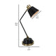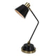 This two-toned retro industrial desk lamp in black and antique brass is highly appealing and conveniently functional. Crafted from quality metal, this piece features a round shade that pivots up and down and an adjustable arm for a customizable experience. The piece comes with a USB port, making it as functional as it is pleasing and decorative.