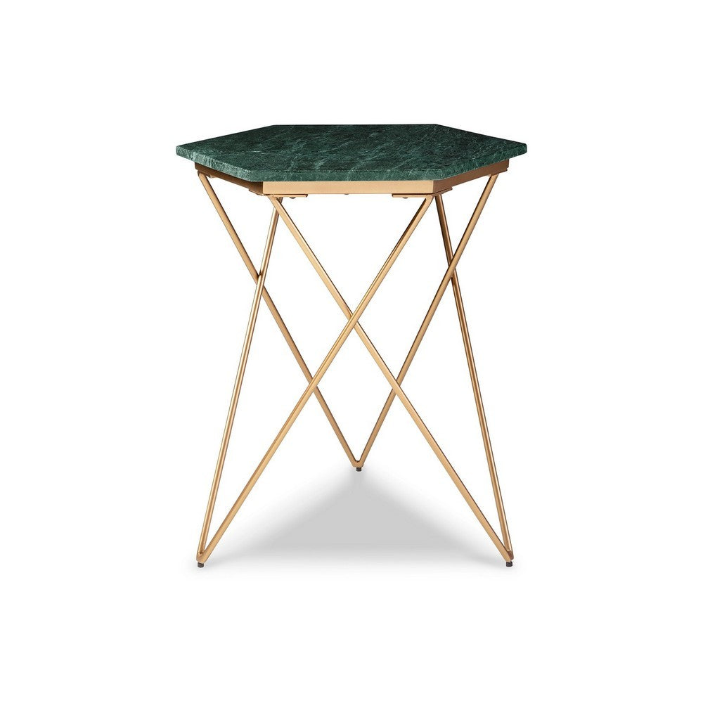 Ashley 24" Accent Table, Green Hexagon Marble Top, Gold Metal by Cassagear Home