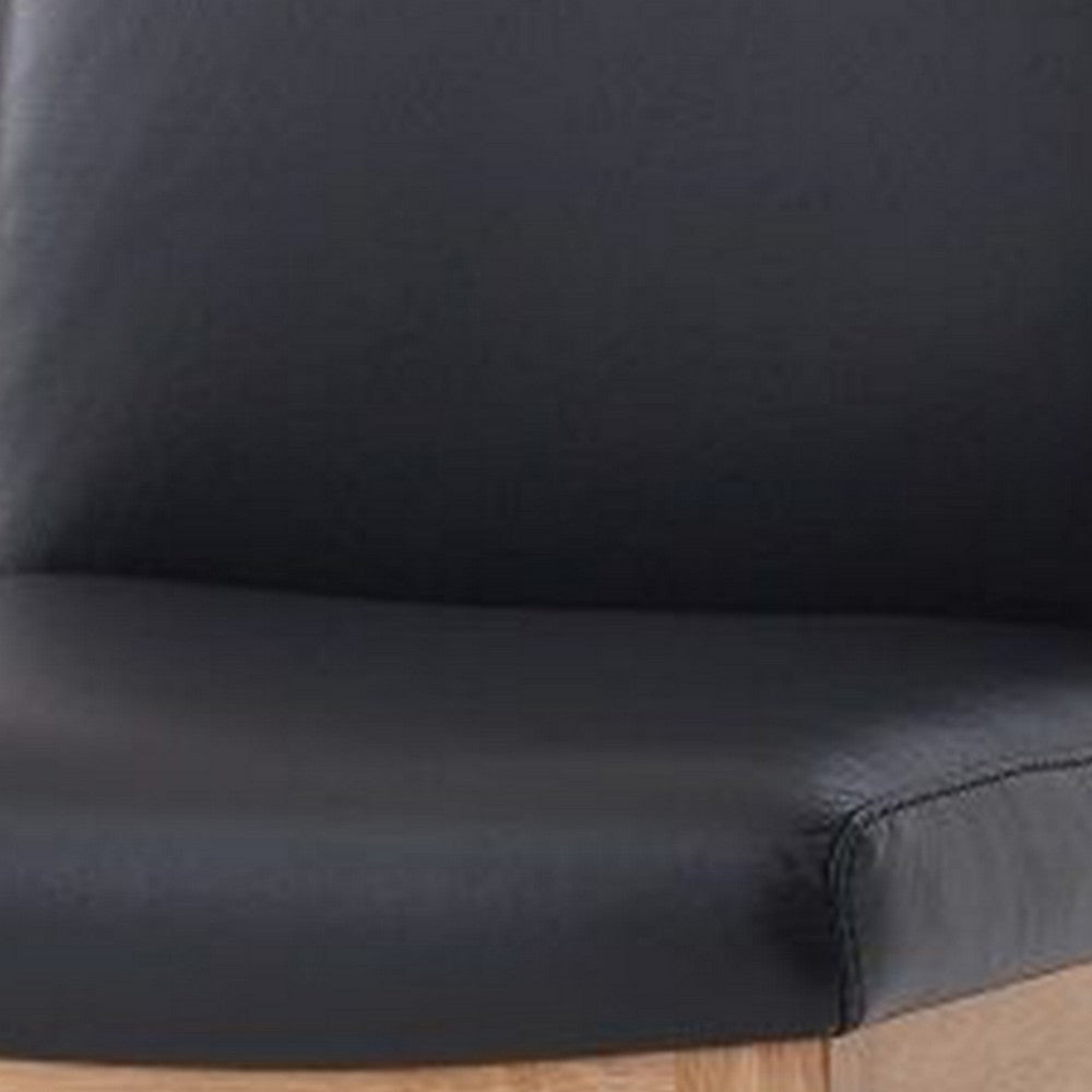 25 Inch Side Dining Chair Set of 2, Tall Back, Black Leather, Brown Wood By Casagear Home