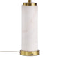 This table lamp exudes elegance and charm with its timeless design. Crafted from durable wood in a pristine white finish, it gives any space a sense of warmth and sophistication. The lamp is adorned with a white fabric drum shade that complements the wood base beautifully, casting a soft, inviting glow. Adding a touch of luxury, gold metal accents adorn the bridge-style base and round tube.