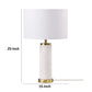25 Inch Table Lamp, White Fabric Drum Shade, Modern Gold Metal Round Base By Casagear Home