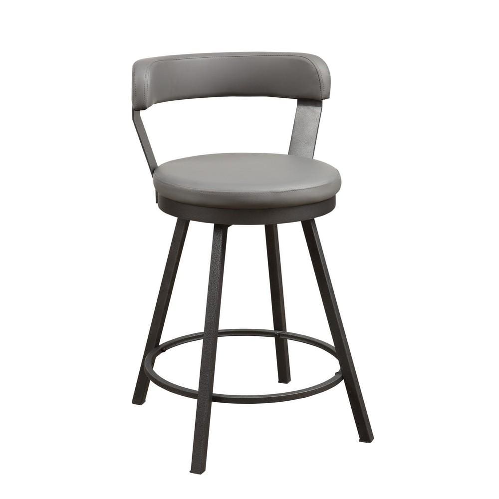 Counter Height Chair | Faux Leather | Metal Slanted Legs | Set of 2 | Gray